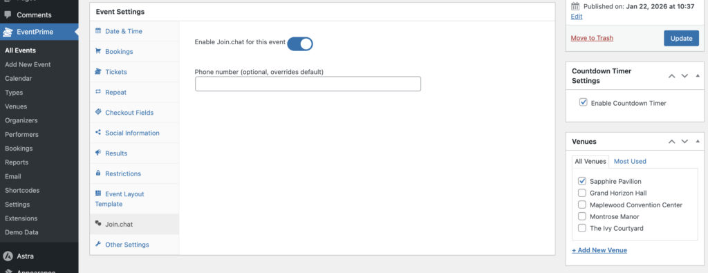 - Join.chat integration support – seamlessly connect EventPrime with the Join.chat plugin for reliable messaging.
