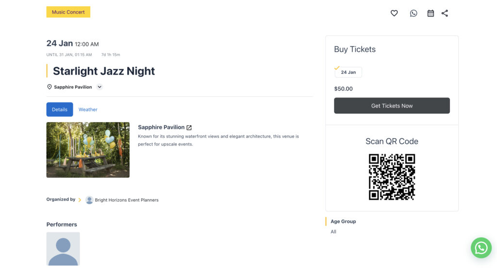 - WhatsApp chat button on Event pages – allow attendees to contact Organizers instantly through WhatsApp.
