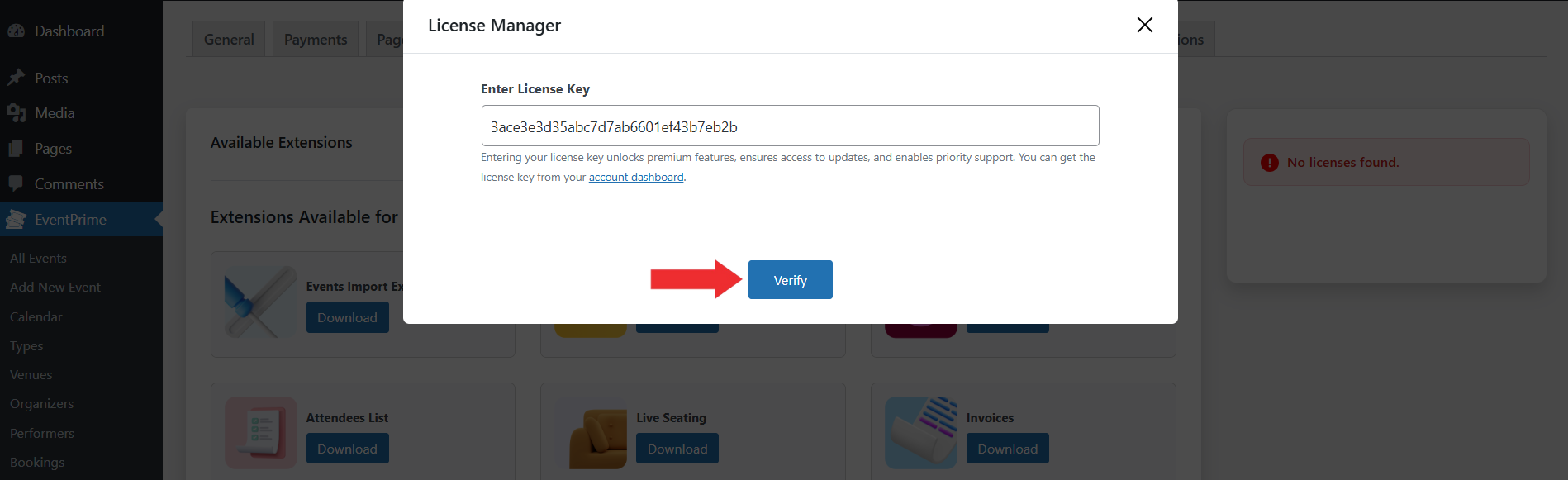By following these steps, you’ll successfully activate your EventPrime license and unlock all purchased features. If you encounter issues with license verification or extension activation, please contact the EventPrime support team for assistance.