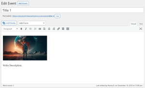 Home / Create Events / How to Add Event Image and Gallery to a WordPress Event / image-26image-26December 18, 2023 EventPrime Leave a Reply Cancel replyYour email address will not be published. Required fields are marked *Name * Email * Website Comment * Save my name, email, and website in this browser for the next time I comment. Δ previousHow to Add Event Image and Gallery to a WordPress Event