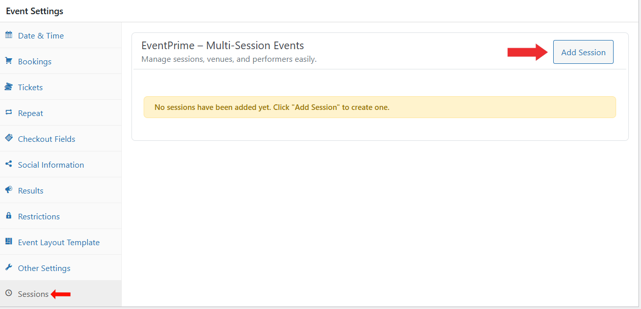 Along with the EventPrime plugin, the EventPrime Multi-Session Events extension must be installed and activated to use this feature. The extension can be accessed from the following link: Get Your EventPrime Multi-Session Events Extension