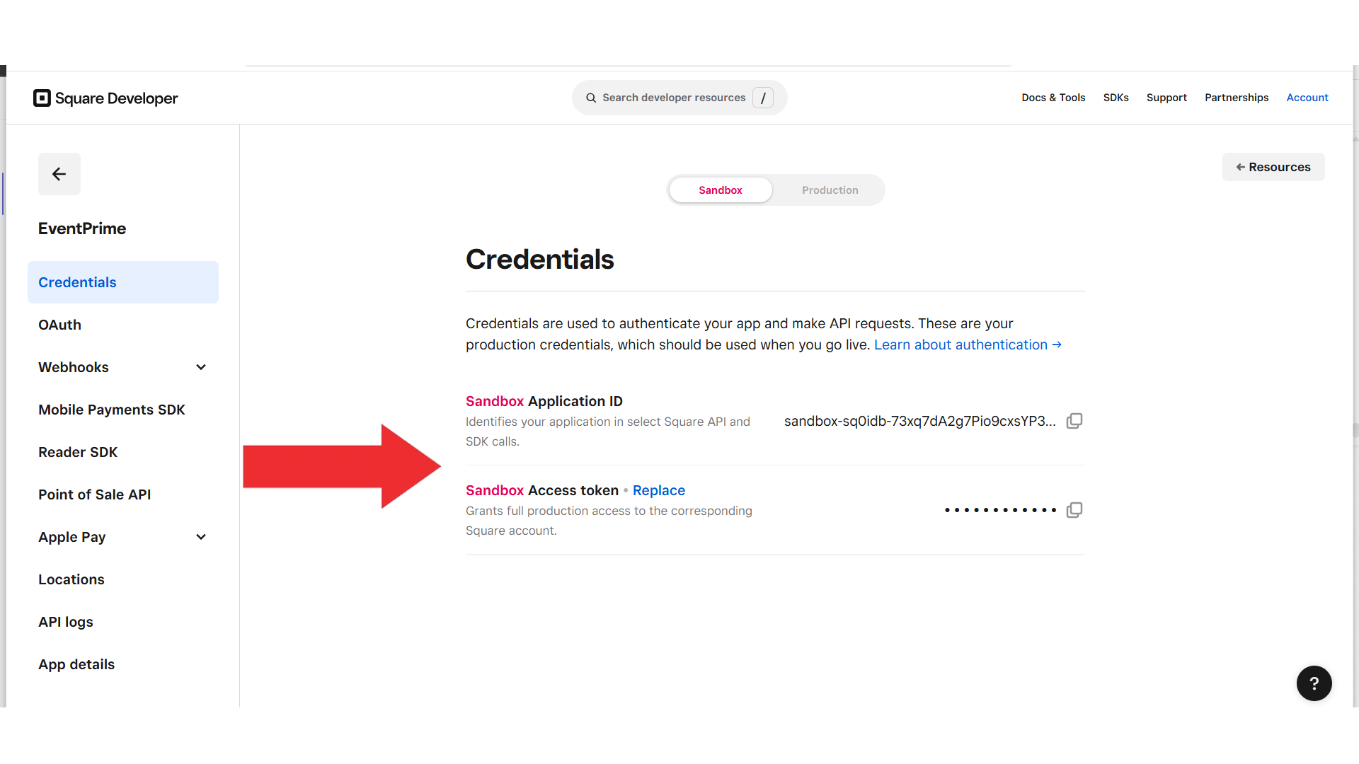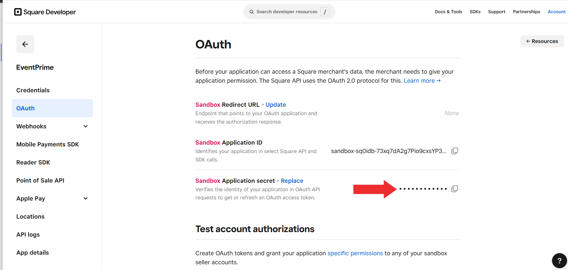 Navigate to the OAuth tab in your Square Developer Console and securely copy the Application Secret, which will be required to authorize your application’s connection with EventPrime.