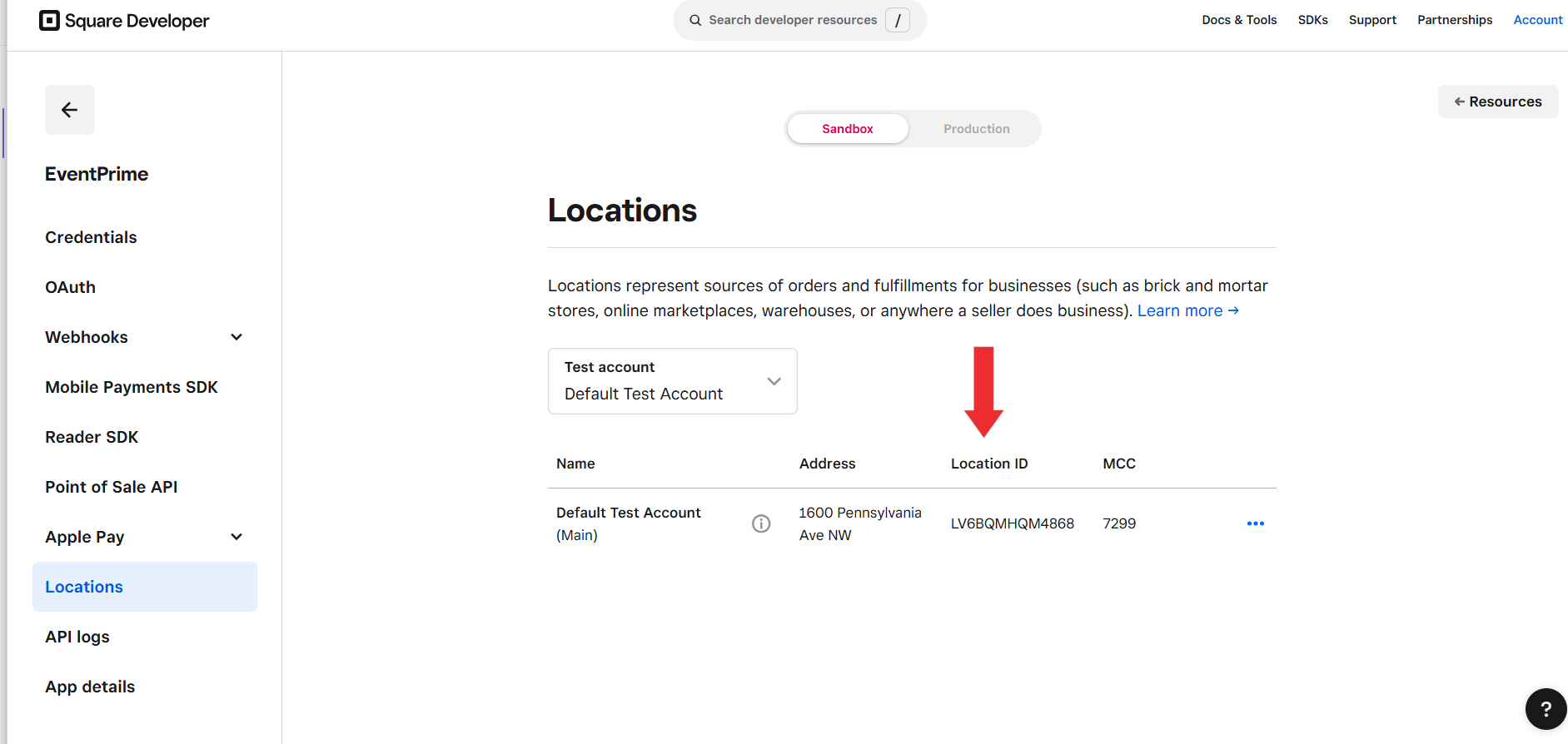 Navigate to the Locations tab, copy your Location ID.