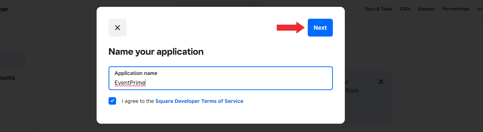 Provide a unique and recognizable name for your application to easily identify it in your Square Developer account.