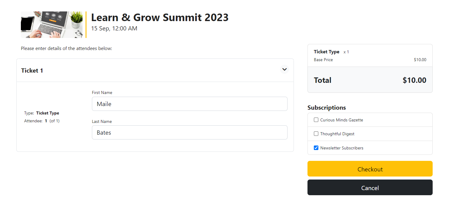 Home / Integrations / How to Connect WordPress Events with Mailchimp / newsletters-list-on-checkout-pagenewsletters-list-on-checkout-pageSeptember 15, 2023 EventPrime Leave a Reply Cancel replyYour email address will not be published. Required fields are marked *Name * Email * Website Comment * Save my name, email, and website in this browser for the next time I comment. Δ previousHow to Connect WordPress Events with Mailchimp