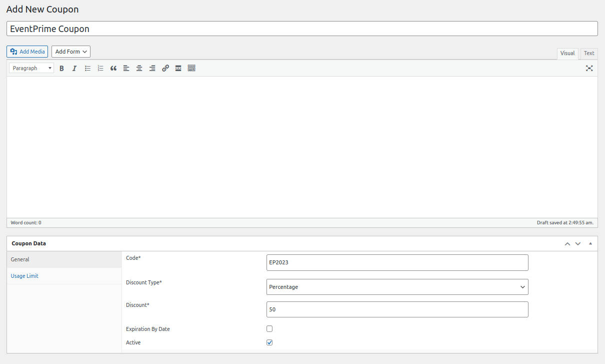 Home / Management / How to Use the Coupon Code Extension in EventPrime / image-14image-14June 19, 2023 EventPrime Leave a Reply Cancel replyYour email address will not be published. Required fields are marked *Name * Email * Website Comment * Save my name, email, and website in this browser for the next time I comment. Δ previousHow to Use the Coupon Code Extension in EventPrime