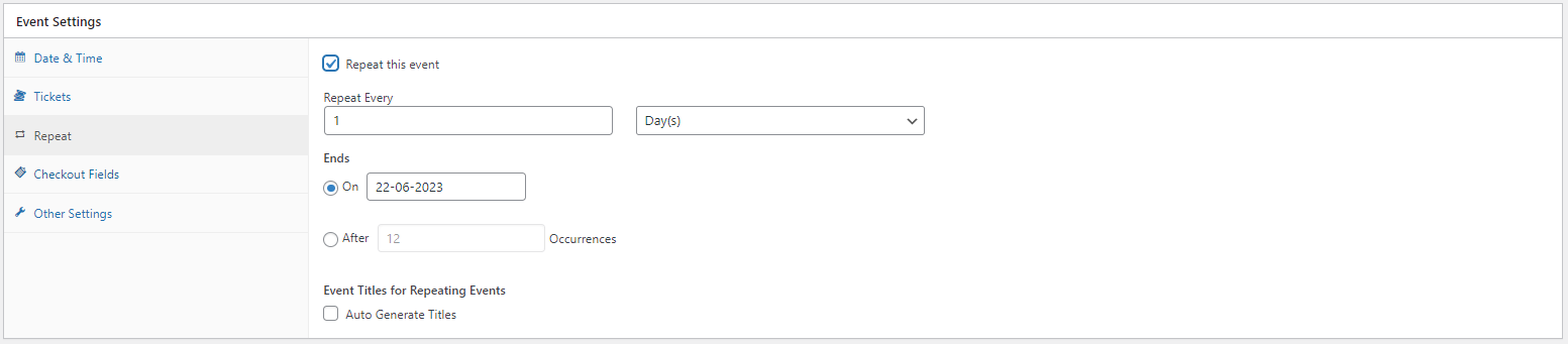 Home / Configure / How to Create Recurring Event in WordPress / image-119image-119June 21, 2023 EventPrime Leave a Reply Cancel replyYour email address will not be published. Required fields are marked *Name * Email * Website Comment * Save my name, email, and website in this browser for the next time I comment. Δ previousHow to Create Recurring Event in WordPress