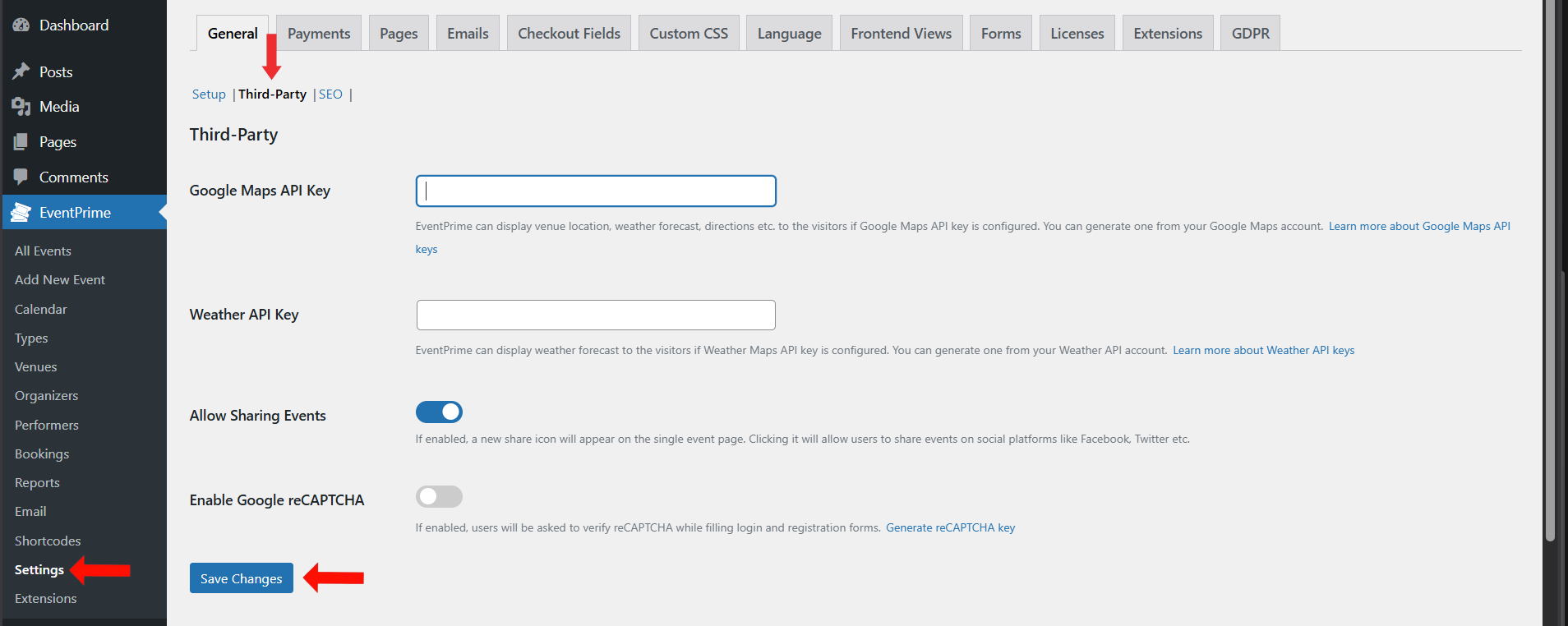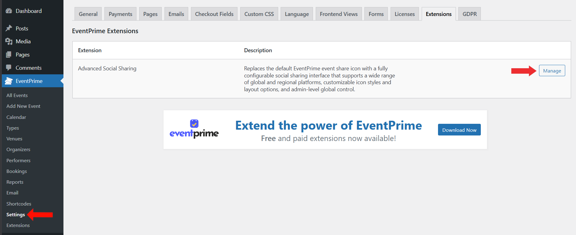 This step enables social sharing at the EventPrime core level and is required for the Advanced Social Sharing extension to function.