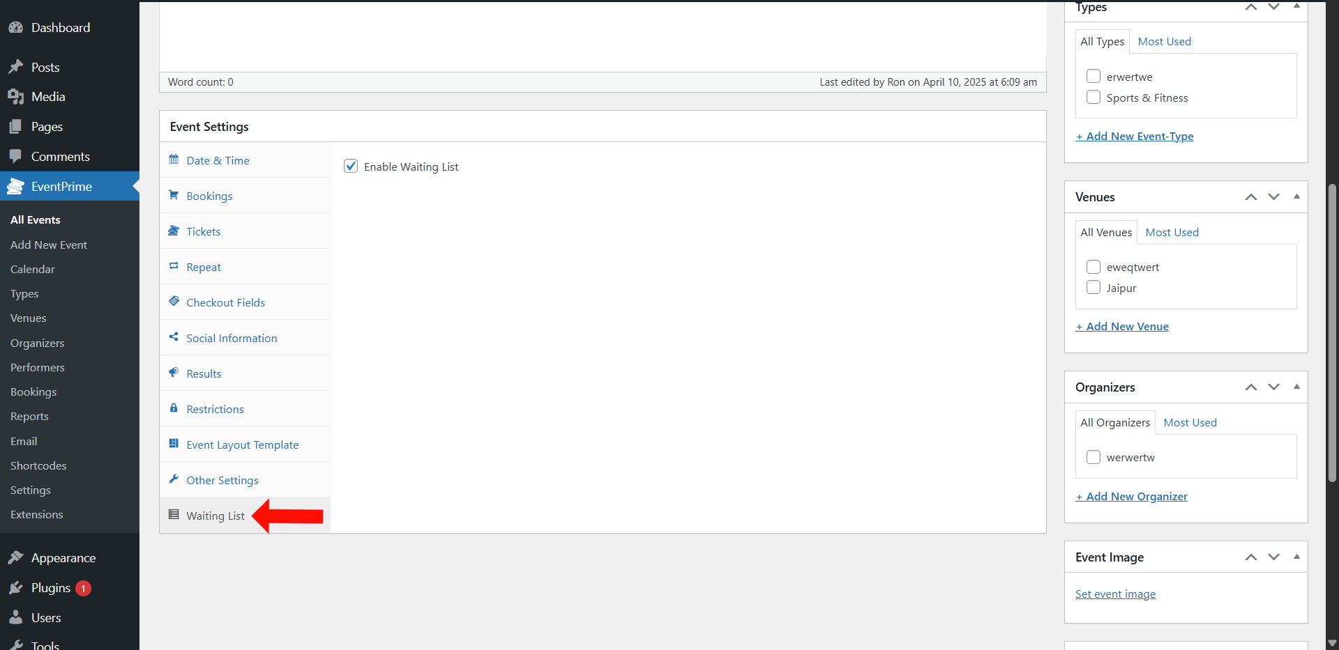 Home / Uncategorized / How to Enable Waiting List Request for Your WordPress Events / EP_waiting_list documentation 5EP_waiting_list documentation 5April 10, 2025 .@none.edu Leave a Reply Cancel replyYour email address will not be published. Required fields are marked *Name * Email * Website Comment * Save my name, email, and website in this browser for the next time I comment. Δ previousHow to Enable Waiting List Request for Your WordPress Events