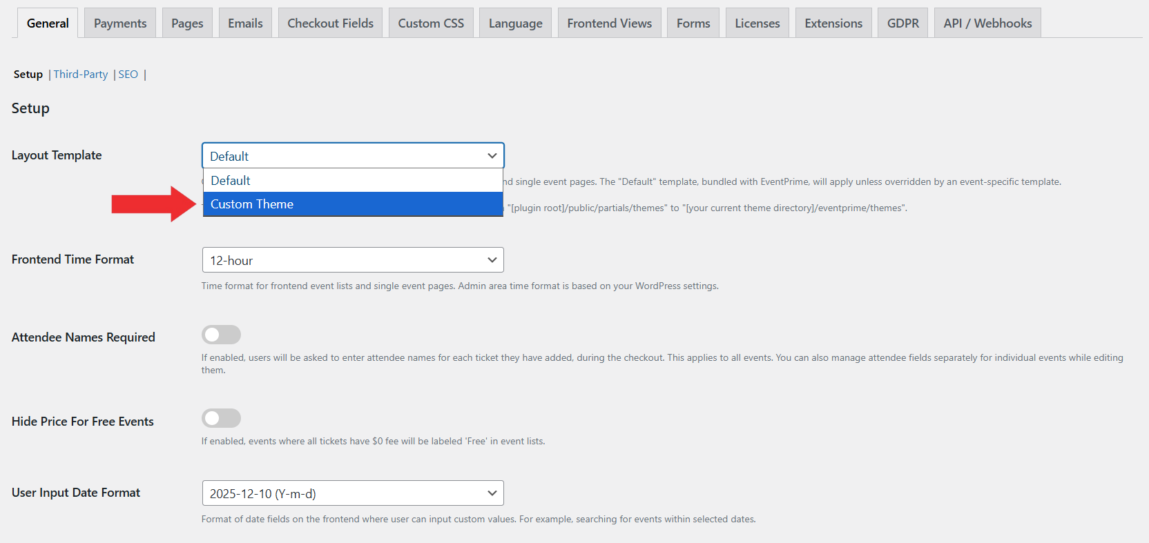 - From the Event Layout Template dropdown, choose the layout you want to apply to that particular Event.