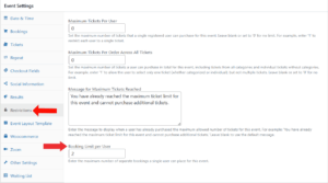 Home / Uncategorized / How to Restrict Booking Per User for Events in WordPress / Event Settings Restriction Tab Booking Limit per userEvent Settings Restriction Tab Booking Limit per userSeptember 9, 2025 Lakshit Mathur Leave a Reply Cancel replyYour email address will not be published. Required fields are marked *Name * Email * Website Comment * Save my name, email, and website in this browser for the next time I comment. Δ previousHow to Restrict Booking Per User for Events in WordPress