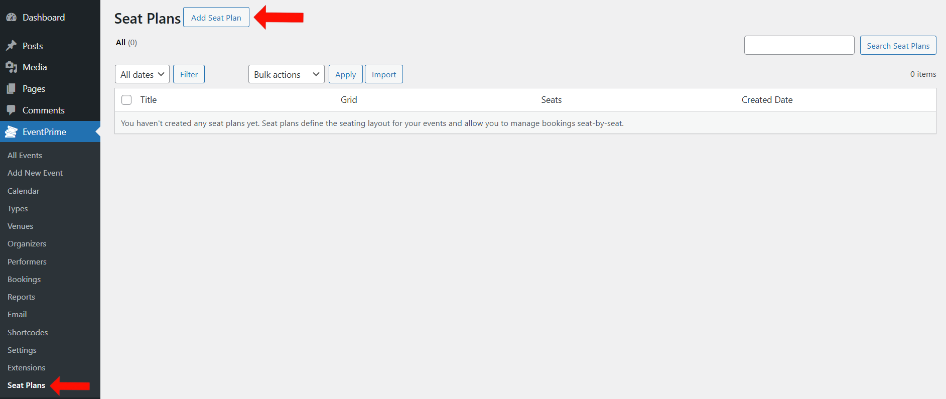 Alongside EventPrime plugin, the Advanced Seat Plan Builder extension needs to be installed and activated. The extension can be accessed from the following link: Get Your Advanced Seat Plan Builder Extension