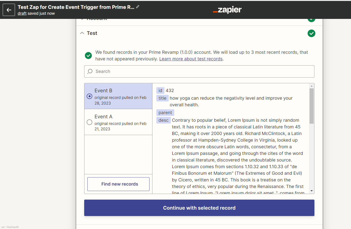 Home / Integrations / How to connect Zapier with WordPress events? / image-41image-41July 13, 2023 EventPrime Leave a Reply Cancel replyYour email address will not be published. Required fields are marked *Name * Email * Website Comment * Save my name, email, and website in this browser for the next time I comment. Δ previousHow to connect Zapier with WordPress events?