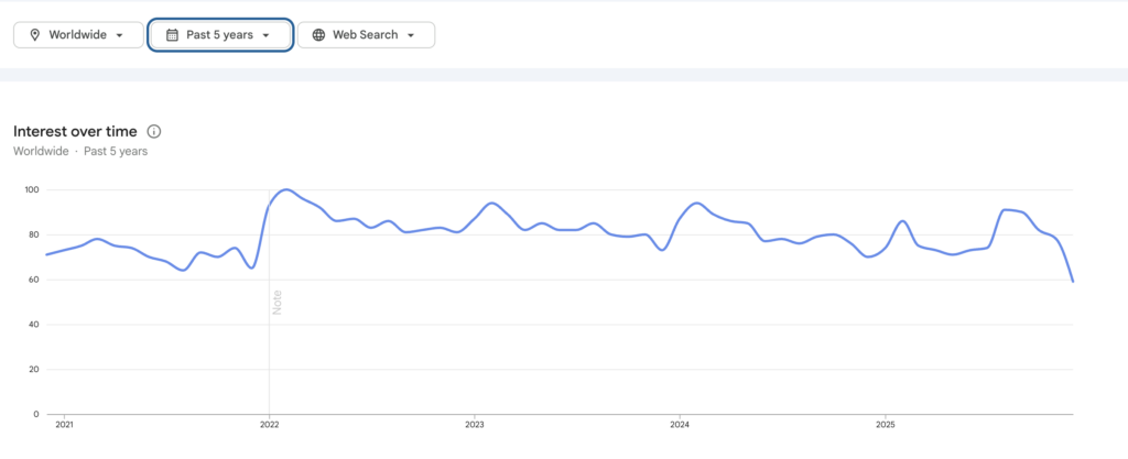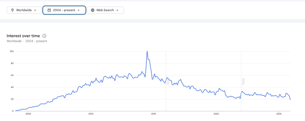 When we examine Google Trends from 2004 to the present, a clear pattern emerges.